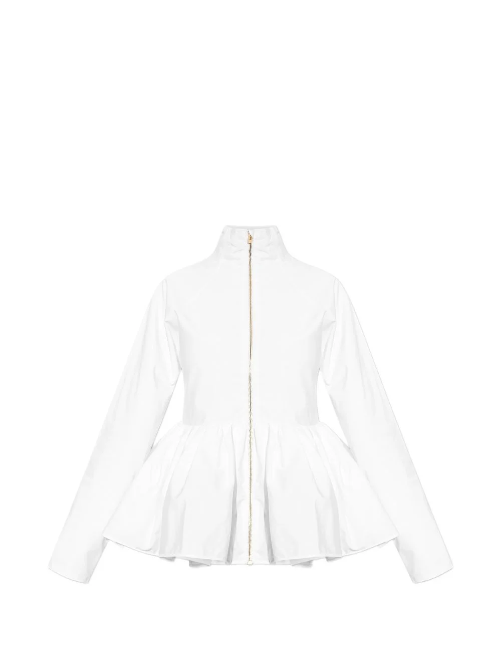 peplum-hem fitted jacket Highlights - White - Zip fastening - Long sleeves - Peplum hem - High neck Made in Italy Composition Cotton 100% Washing instructions Read Manufacturer Guidelines