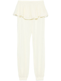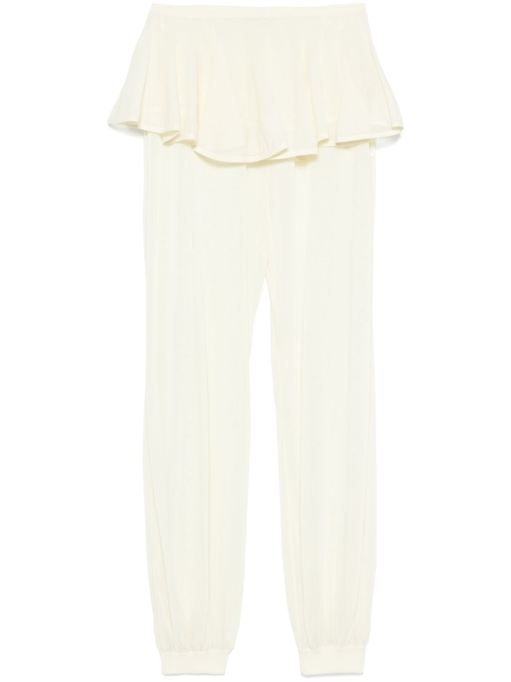 peplum-waist crinoline trousers Highlights - Light yellow - Semi-sheer construction - Elasticated waistband - Ribbed ankles Made in Italy Composition Viscose 74%, Polyamide 25%, Elastane 1% SIZE & FIT Model measurements Height 5 ft 9 in(1.76 m) Bust/Chest 32.28 in(82 cm) Hips 35.43 in(90 cm) Waist 25.19 in(64 cm) FittingInformation Designed for a straight-leg fit, these trousers allow for a close fit at the waist and an unrestricted, comfortable fit over the leg The elasticated hem at the ankle allows for movement and a comfortable fit Made from a lightweight stretch fabric, this piece offers elasticity and flexibility when worn
