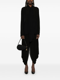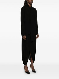 pussy-bow collar georgette blouse Highlights - Black - Plunging v-neck - Long sleeves - Buttoned cuffs - Semi-sheer construction Made in Italy Composition Viscose 100% SIZE & FIT Model measurements Height 5 ft 11 in(1.8 m) Bust/Chest 32.67 in(83 cm) Hips 36.22 in(92 cm) Waist 24.4 in(62 cm) FittingInformation Designed to be unstructured, offering a loose fit throughout Made from a lightweight non-stretch fabric