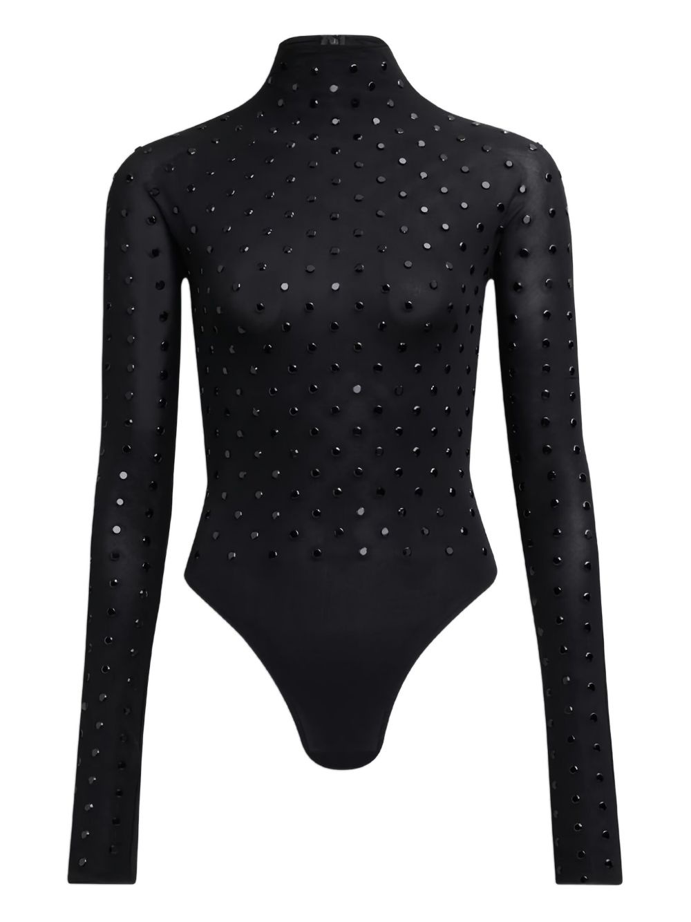 rhinestone high-neck bodysuit Highlights - Black - High neck - Long sleeves - All-over rhinestone embellishment - Sheer fabric - Just a reminder that this piece must be tried on over your own garments. Made in Italy Composition glass 98%, Viscose 93%, Polyurethane 7%, Polyamide 2% Washing instructions Read Manufacturer Guidelines