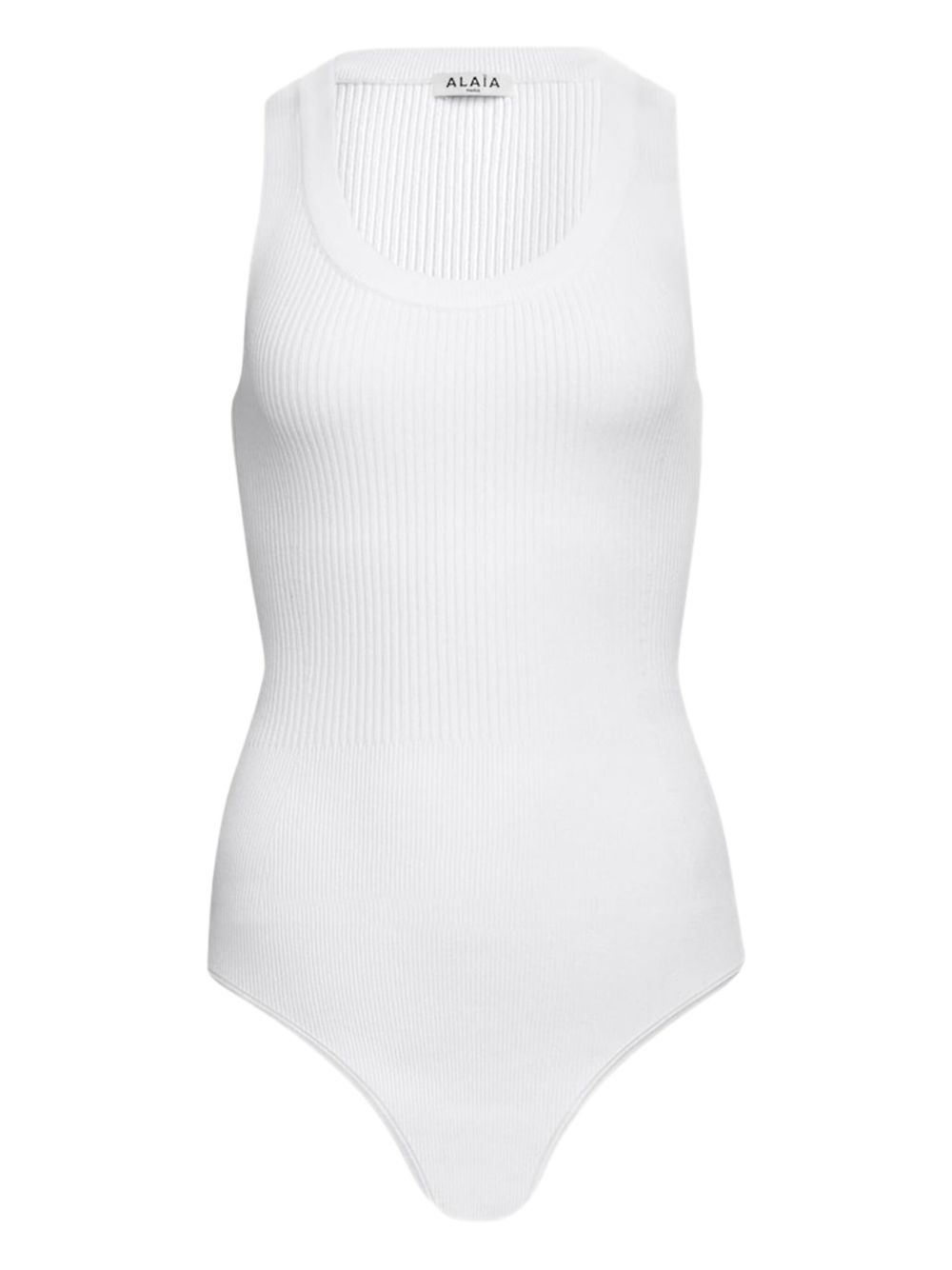 ribbed bodysuit Highlights - White - Scoop neck - Sleeveless - Just a reminder that this piece must be tried on over your own garments. Made in Italy Composition Viscose 83%, Polyester 17%