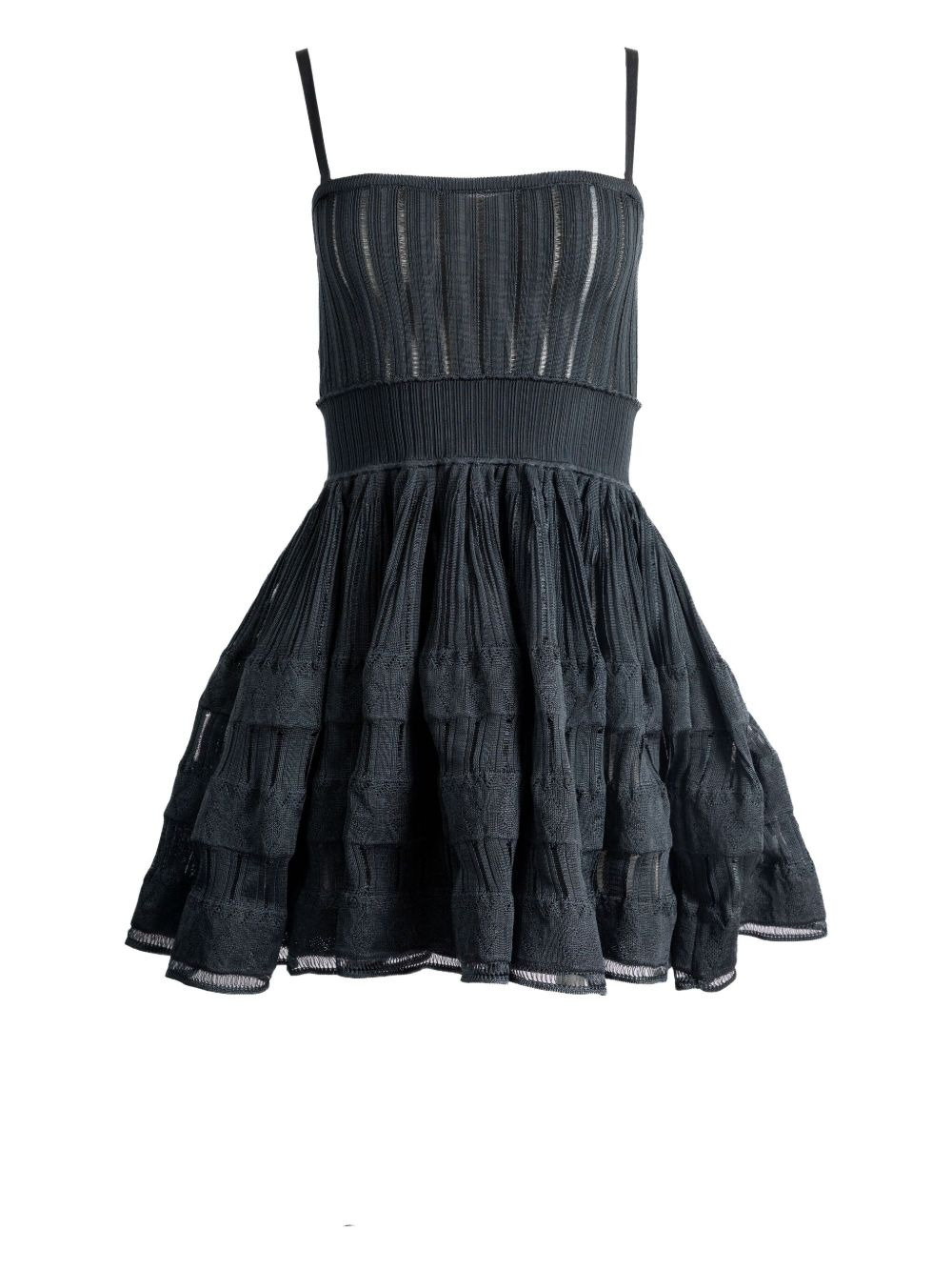 ribbed layered mini dress Highlights - Black - Layered skirt - Spaghetti straps - Square neckline Made in Italy Composition Viscose 100% Washing instructions Read Manufacturer Guidelines