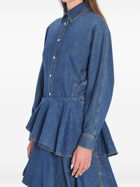 ruffled denim shirt Highlights - Blue - Cotton - Snap-button closure - Buttoned cuffs - Topstitched details - Ruffle hem Made in Italy Composition Cotton 100% Washing instructions Read Manufacturer Guidelines