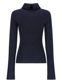 ruffled long-sleeve top Highlights - Dark blue - Ribbed knit - Ruffled high neck - Long sleeves - Rear zip fastening Imported Composition Cashmere 94%, Wool 3%, Polyamide 2%, Elastane 1% Washing instructions Read Manufacturer Guidelines