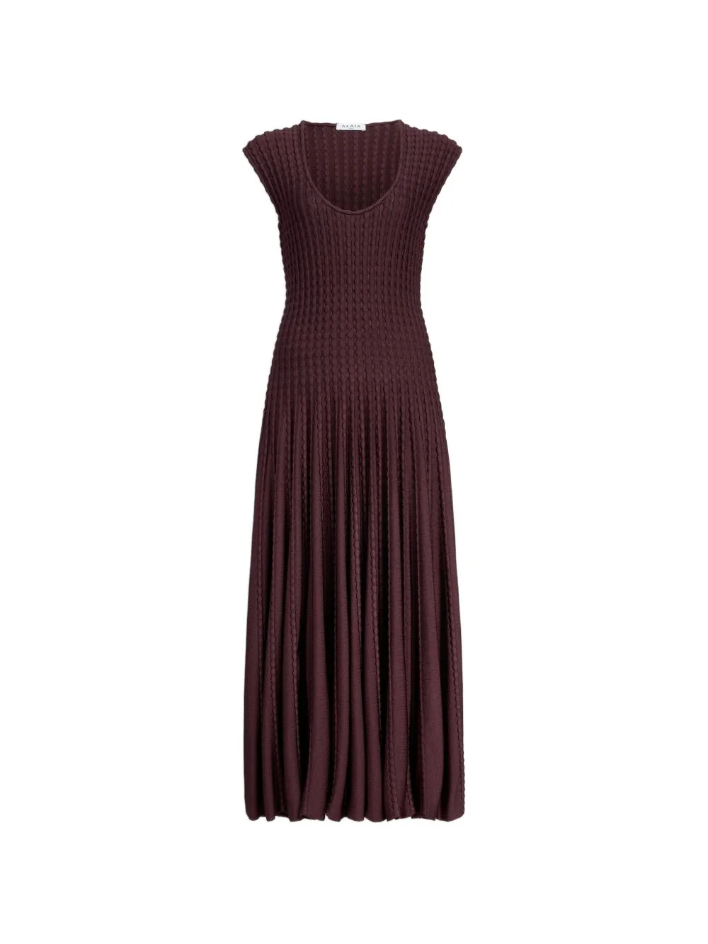 Sculptural flare midi dress Highlights - Purple - Textured - Pleated skirt - Round neck - Short sleeves - Midi-length Made in Italy Composition Viscose 86%, Polyamide 7%, Polypropylene 6%, Polyurethane 1% Washing instructions Read Manufacturer Guidelines