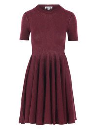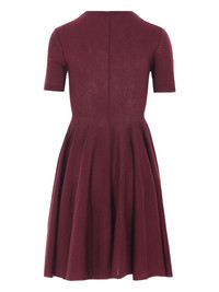 short-sleeve flared dress Highlights - Burgundy - Short sleeves - Round neck - Flared hem - Knitted construction Made in Italy Composition Virgin Wool 100% Washing instructions Read Manufacturer Guidelines