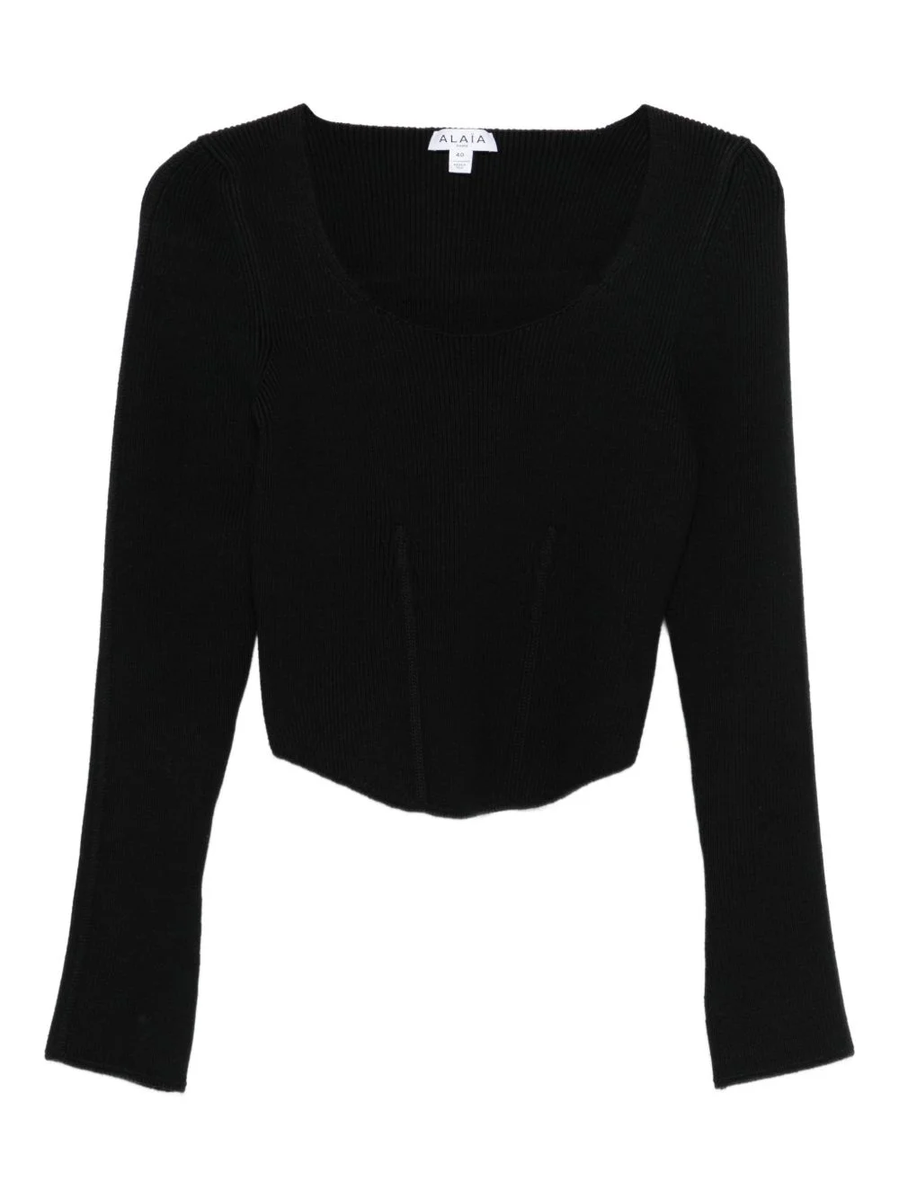 square-neck sweater Highlights - Black - Long sleeves - Square neck - Ribbed knit Made in Italy Composition Wool 92%, Polyamide 7%, Spandex/Elastane 1% Washing instructions Dry Clean Only