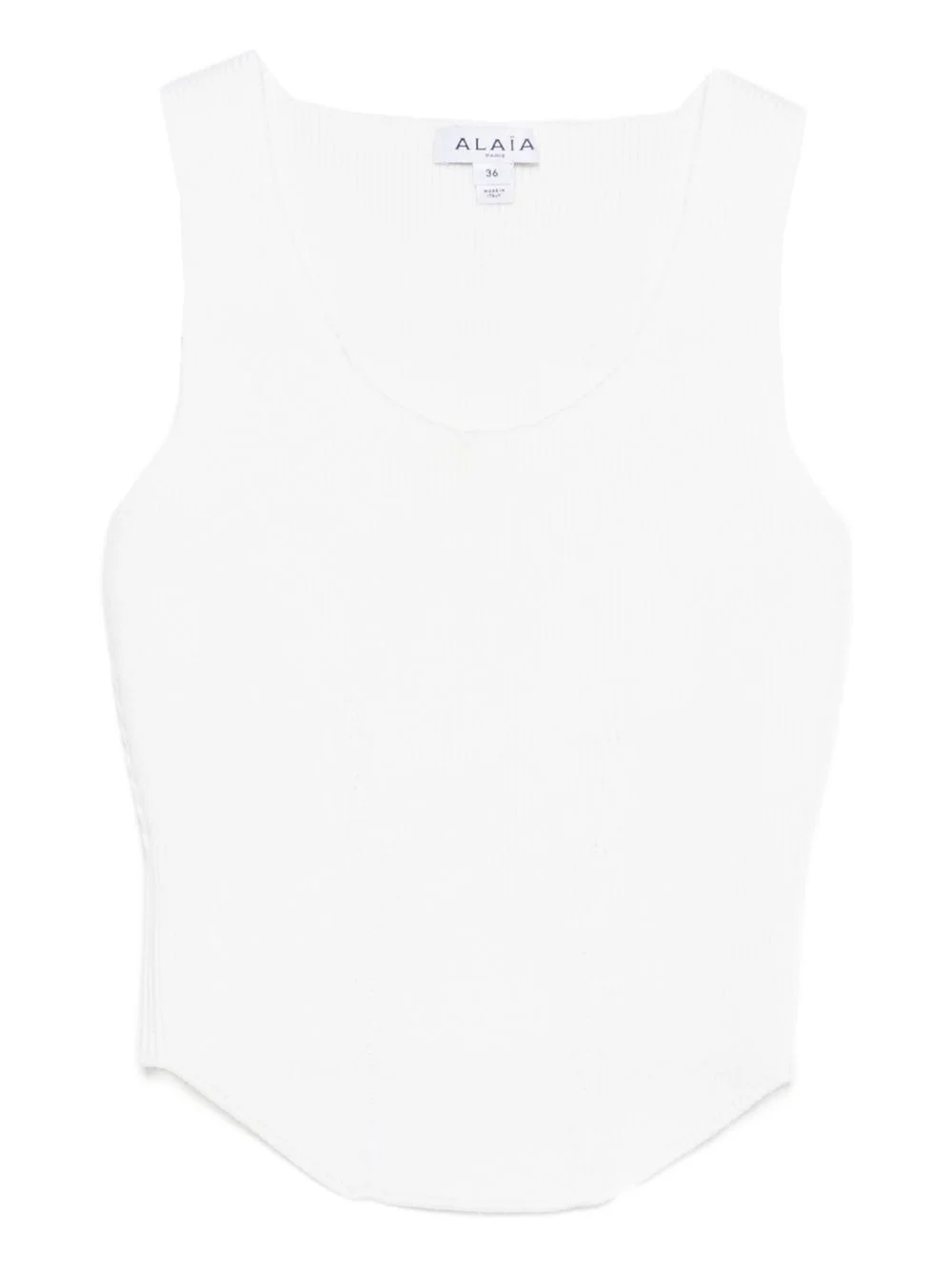 square-neck top Highlights - White - Square neck - Sleeveless - Ribbed texture - Curved hem Made in Italy Composition Wool 92%, Polyamide 7%, Elastane 1% SIZE & FIT Model measurements Height 5 ft 10 in(1.78 m) Bust/Chest 31.49 in(80 cm) Hips 37 in(94 cm) Waist 23.62 in(60 cm) Washing instructions Dry Clean Only