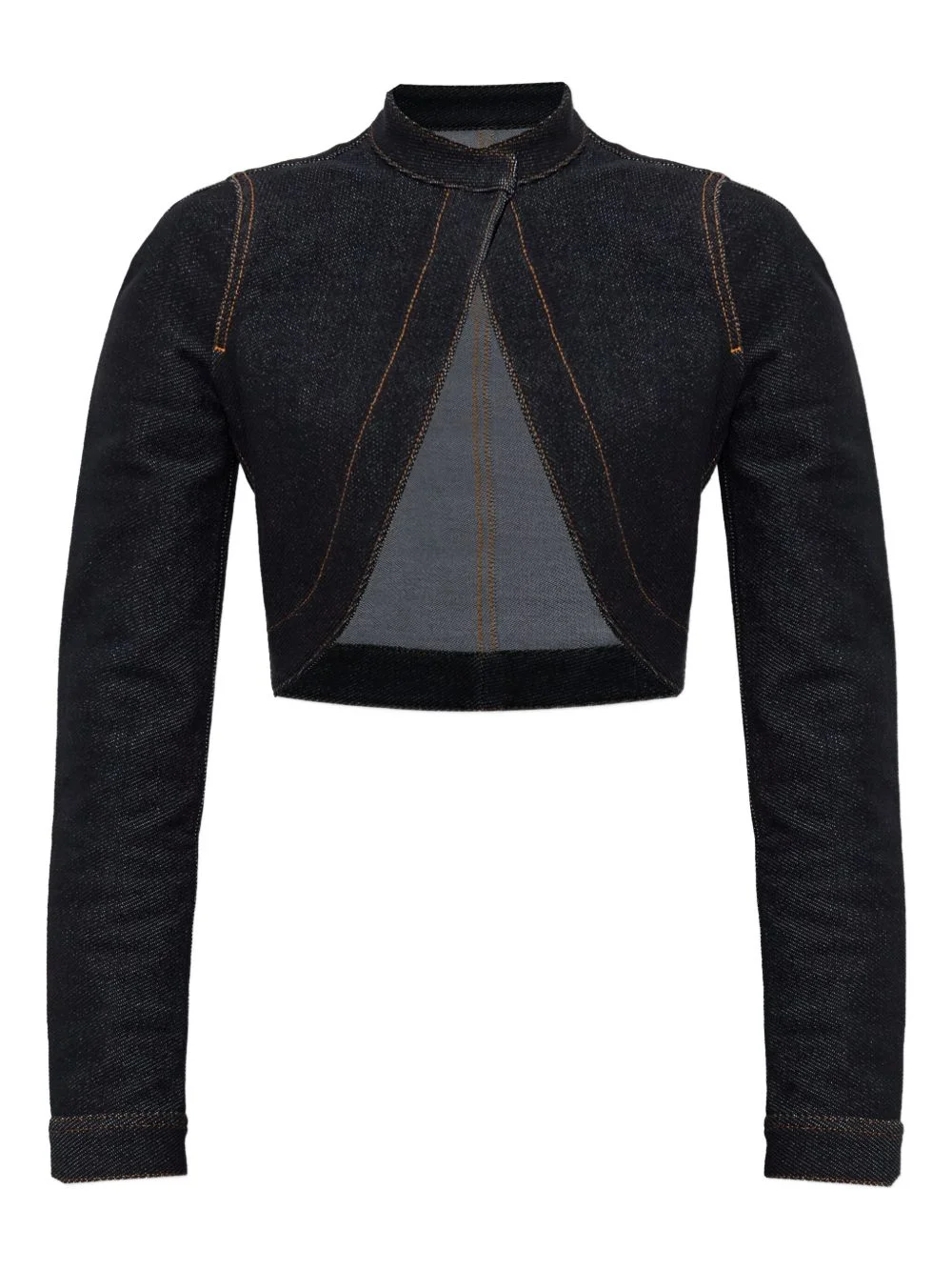 DENIM KNIT CROPPED CUT-OUT JACKET