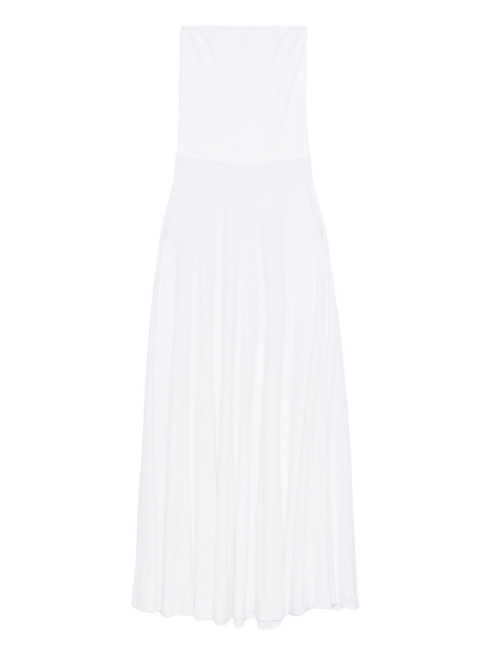 strapless maxi dress Highlights - White - Strapless - Flared - Straight hem Made in Italy Composition Linen/Flax 90%, Polyamide 9%, Polyurethane 1% SIZE & FIT Model measurements Height 5 ft 10 in(1.78 m) Bust/Chest 33.46 in(85 cm) Hips 36.22 in(92 cm) Waist 23.22 in(59 cm) Washing instructions Dry Clean Only