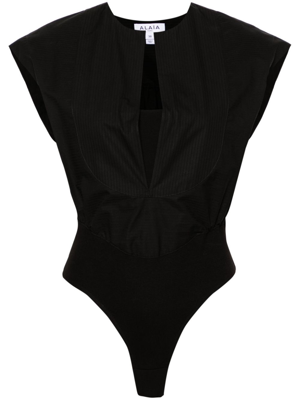 striped plunge body Highlights - Black - Cotton - Poplin texture - Pinstripe pattern - Ribbed panelling - Plunge style - Round neck - Concealed press-stud fastening - Cap sleeves - High cut Made in Italy Composition Cotton 100% SIZE & FIT Model measurements Height 5 ft 10 in(1.77 m) Bust/Chest 32.28 in(82 cm) Hips 35.03 in(89 cm) Waist 25.19 in(64 cm) FittingInformation Designed for a loose fit at the chest and waist with a close fit at the hips Made from a midweight non-stretch fabric This piece fits true to size – take your usual size