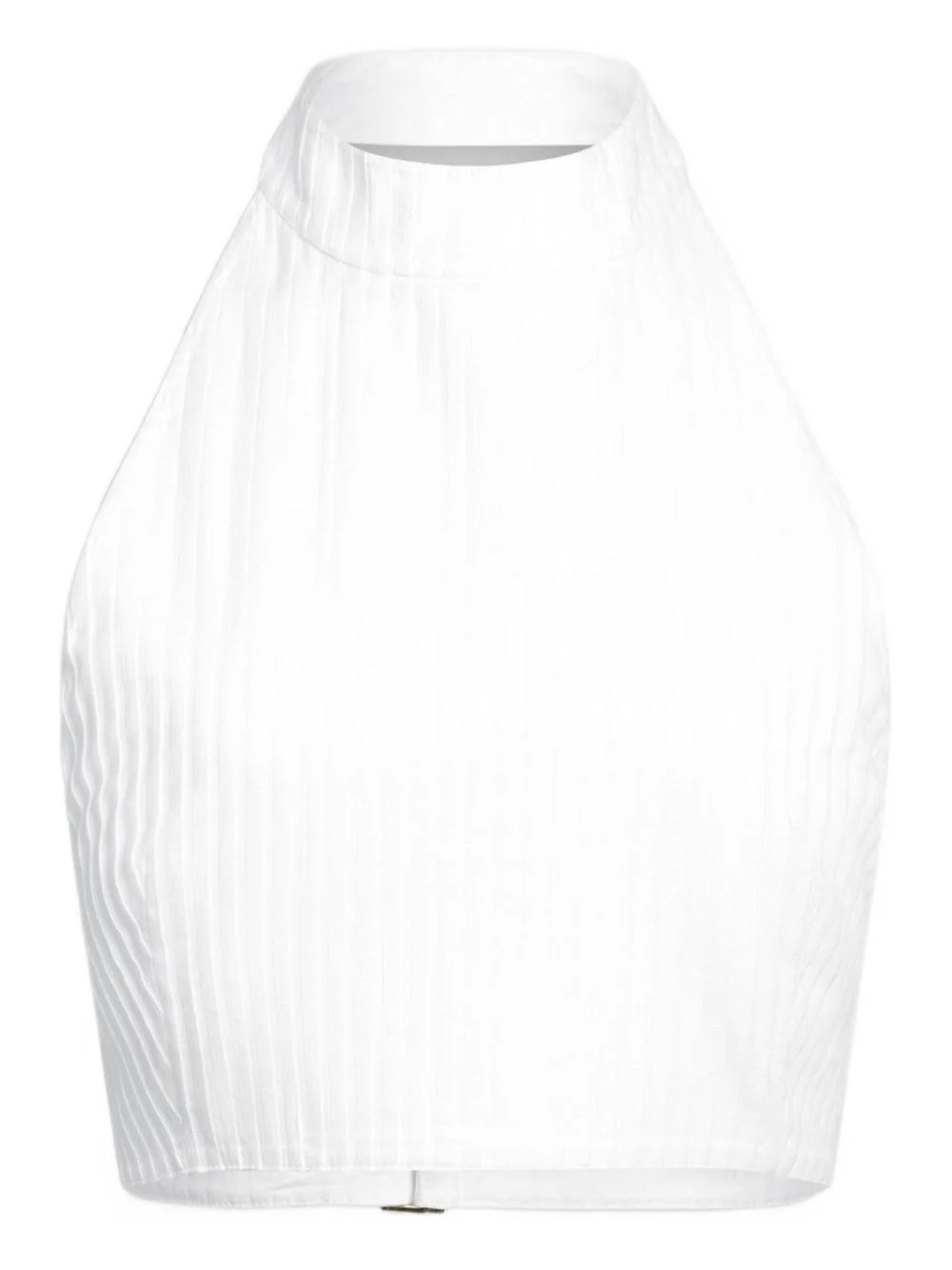 tuxedo bib top Highlights - White - Cotton - Textured - High neck - Sleeveless - Halterneck - Relaxed fit Made in Italy Composition Cotton 100% Washing instructions Read Manufacturer Guidelines