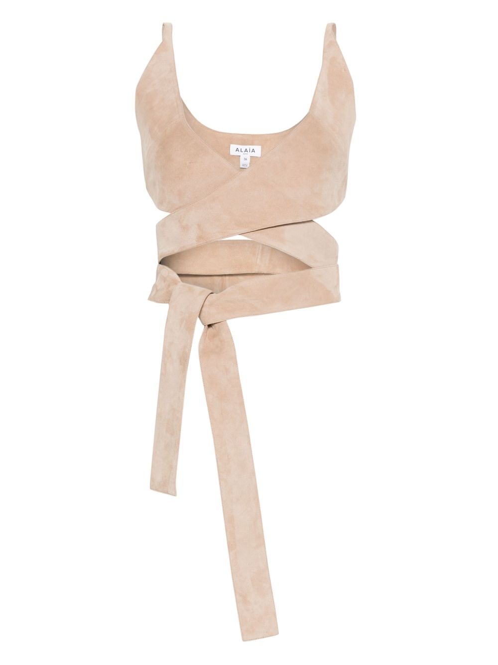 wrap striped cropped top Highlights - Beige - Self-tie fastening - Sleeveless Made in France Composition Goat Skin 100% SIZE & FIT Model measurements Height 5 ft 10 in(1.78 m) Bust/Chest 33.85 in(86 cm) Hips 36.61 in(93 cm) Waist 26.77 in(68 cm) Washing instructions Specialist Cleaning