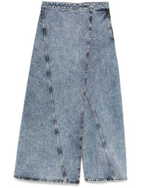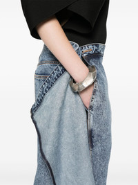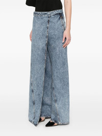 wrap wide-leg jeans Highlights - Cerulean blue - Hook fastening - Side slit pocket - Two rear welt pockets - Side slit Made in Italy Composition Lining: Polyester 65%, Cotton 35% Outer: Polyurethane 1% SIZE & FIT Model measurements Height 5 ft 9 in(1.75 m) Bust/Chest 31.88 in(81 cm) Hips 34.64 in(88 cm) Waist 24.01 in(61 cm) FittingInformation Designed with a wide leg cut, these jeans allow for a close fit at the waist and offer a loose and roomy fit over the leg Constructed from stretch denim, this piece offers a stretch fit with durability