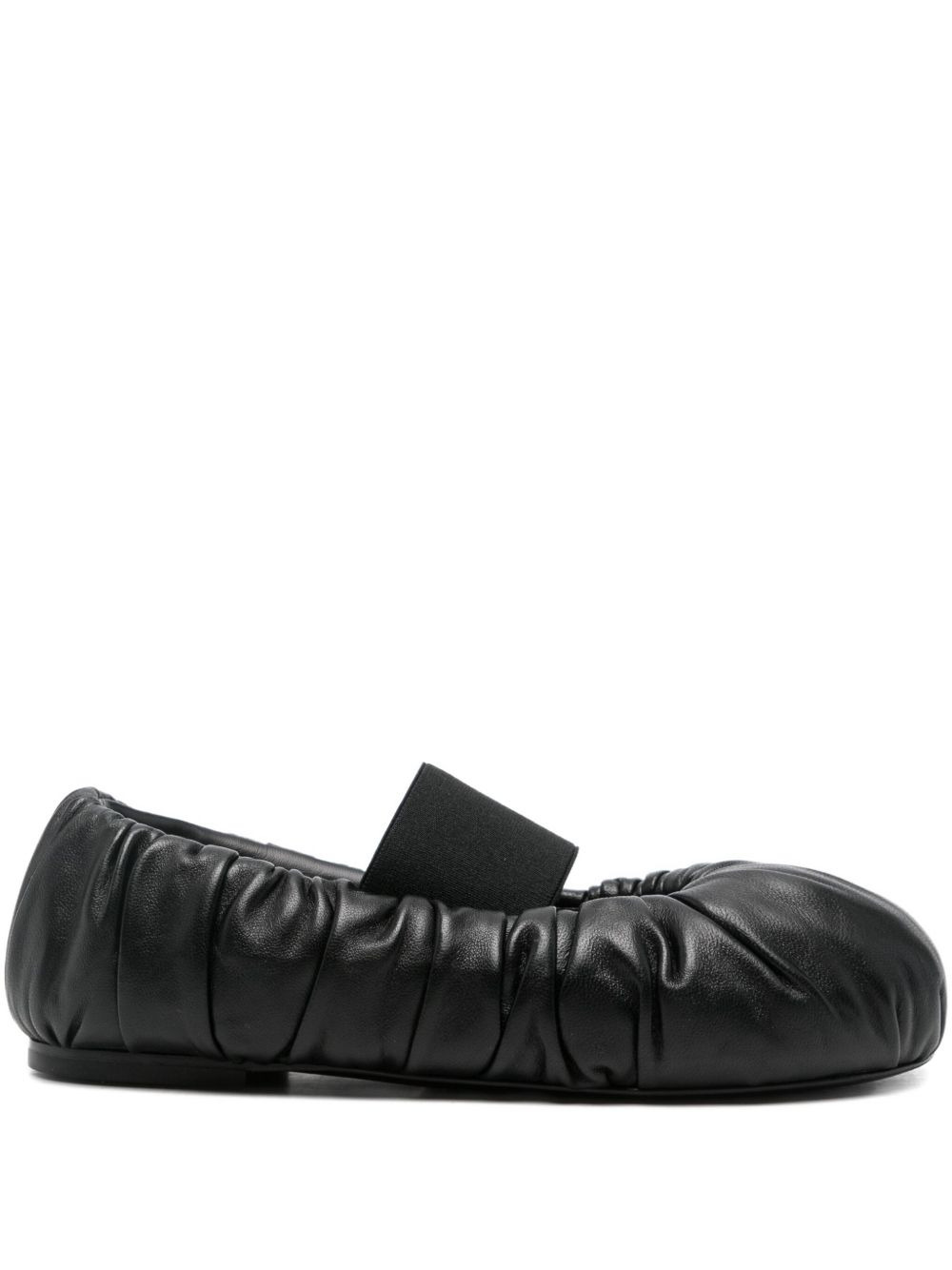 elasticated-band gathered leather ballet flats Highlights - Black - Gathered leather - Elasticated band - Round toe - Flat sole - Slip-on style Imported Composition Outer: Calf Leather 100% Lining: Calf Leather 100% Sole: Rubber 100%