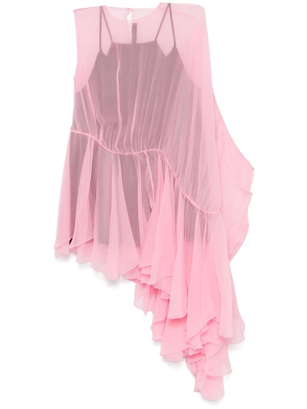 extended ruffle top Highlights - Rose pink - Removable lining - Ruched detailing - Crew neck Imported Composition Silk 100% SIZE & FIT Model measurements Height 5 ft 9 in(1.75 m) Bust/Chest 34.64 in(88 cm) Hips 36.61 in(93 cm) Waist 26.37 in(67 cm) FittingInformation Designed to be unstructured, offering a loose fit throughout The detachable slip sits just away from the body, offering a close yet comfortable fit Made from a lightweight non-stretch fabric