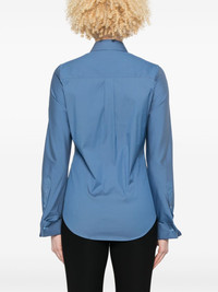 Fuseau shirt Highlights - Cerulean blue - Front button fastening - French cuffs - Box-pleat detail - Curved hem Imported Composition Cotton 78%, Polyamide 18%, Elastane 4% SIZE & FIT Model measurements Height 5 ft 9 in(1.75 m) Bust/Chest 34.64 in(88 cm) Hips 36.61 in(93 cm) Waist 26.37 in(67 cm) FittingInformation Designed for a slim fit that sits just away from the body offering a close yet comfortable fit The sleeves are constructed with additional length and built-in thumb loops that allow for movement and a secure fit Made from a midweight stretch fabric, this piece offers elasticity and flexibility when worn