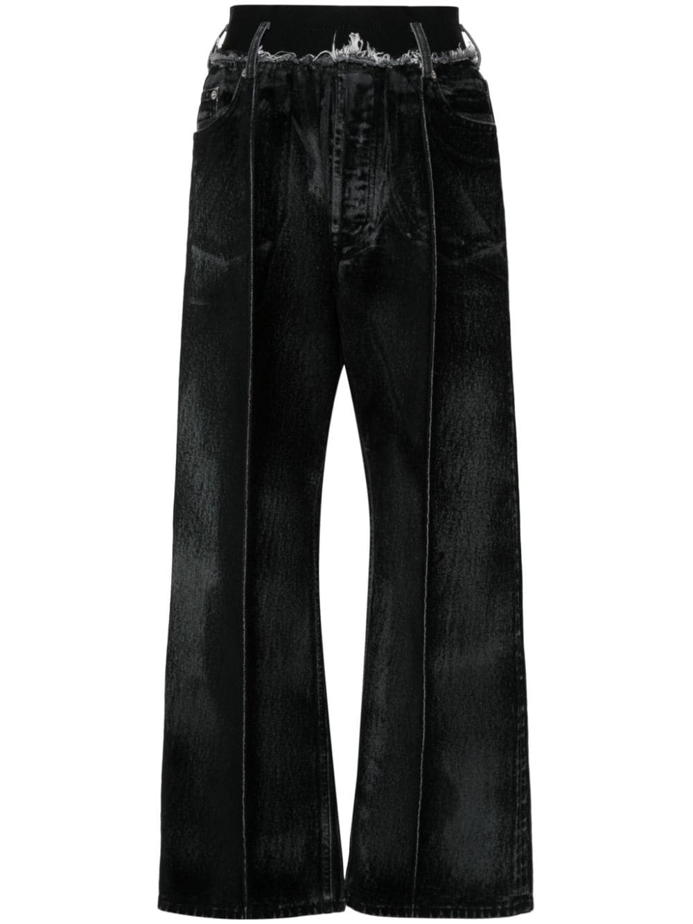 logo-waistband jeans Highlights - Black - Cotton - Denim - Elasticated logo waistband - Front button fastening - Faded effect - Textured finish - Raw-cut waistband - Belt loops - Classic five pockets - Raised seam detail - Straight leg Made in Italy Composition Cotton 100% SIZE & FIT Model measurements Height 5 ft 9 in(1.75 m) Bust/Chest 34.64 in(88 cm) Hips 36.61 in(93 cm) Waist 26.37 in(67 cm) FittingInformation Designed for a straight-leg fit, these jeans allow for a close fit at the waist and an unrestricted and comfortable fit over the leg The elasticated waist allows for a comfortable fit Sturdy and hard-wearing, this denim piece offers no stretch