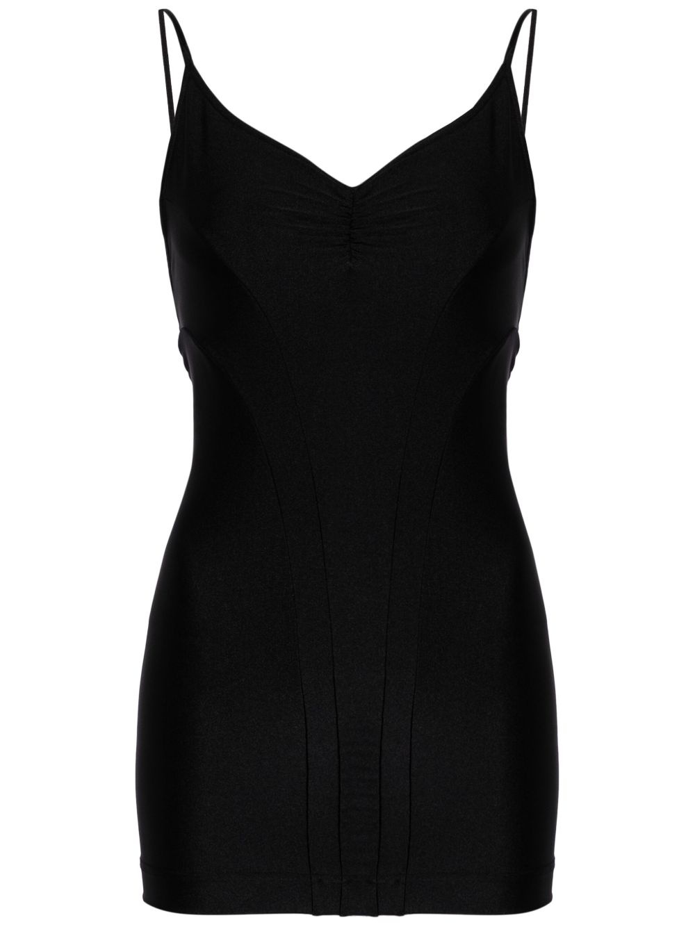 V-neck gathered top Highlights - Black - Stretch-design - Gathered detailing - V-neck - Spaghetti straps - Fitted waistline - Extra-long length - Straight hem Imported Composition Polyamide 80%, Elastane 20%
