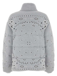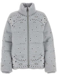 bandana-print zip-up down jacket Highlights - Medium grey - Virgin wool - Feather down - Bandana print - High neck - Front zip fastening - Long sleeves - Ribbed cuffs - Two side inset pockets - Straight hem Made in Italy Composition Outer: Virgin Wool 100% Lining: Nylon 100%, Down 90%, Feather 10% Washing instructions Read Manufacturer Guidelines