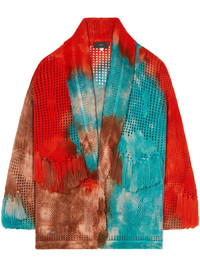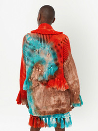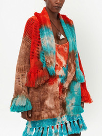 California Dreaming tie-dye cardigan orange/multicolour virgin wool tie-dye print shawl lapels belted waist long sleeves tasselled edge Made in Italy Composition Virgin Wool 100%