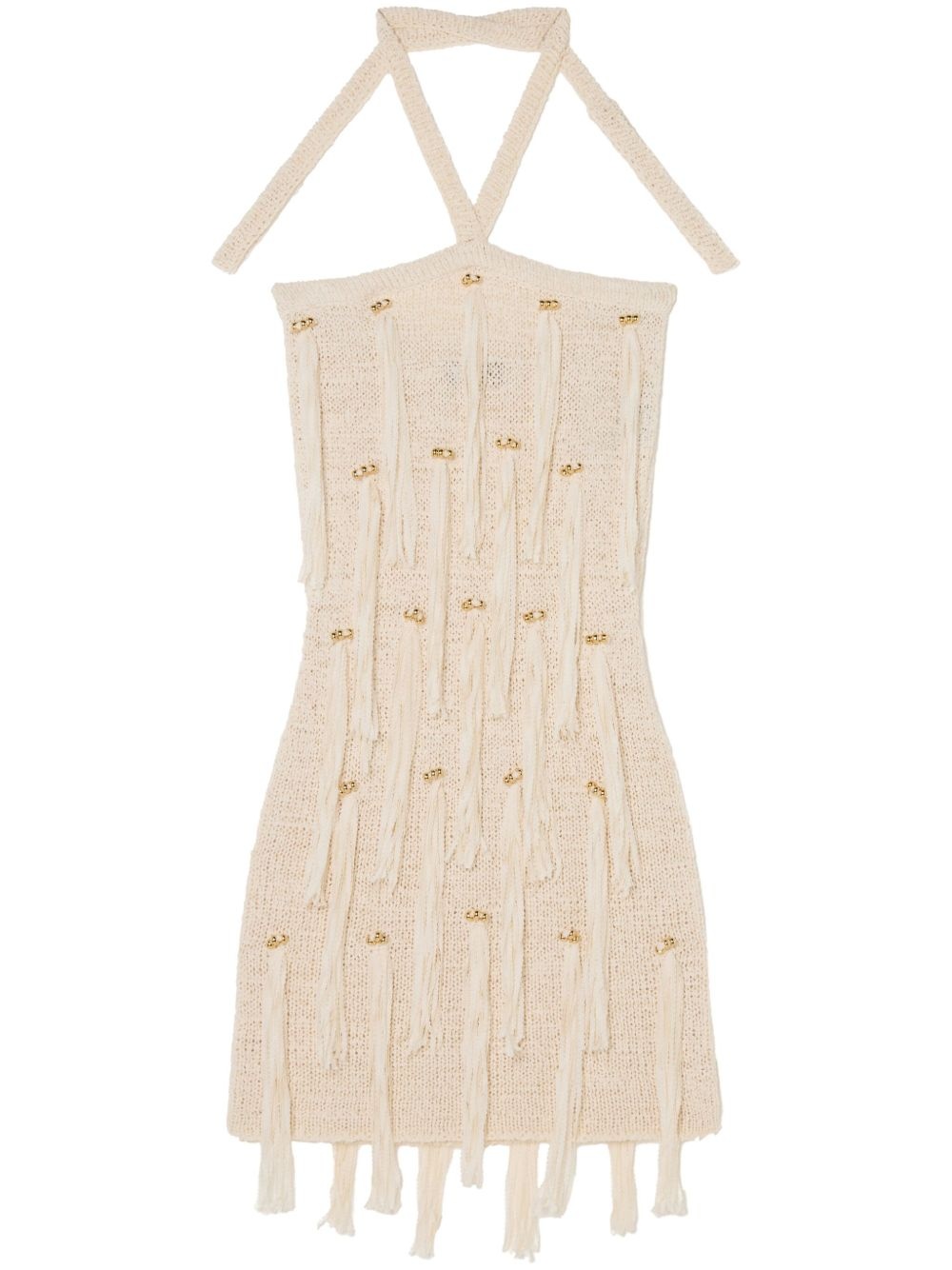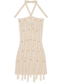 Cape Jasmine mini dress Highlights - Beige - Halterneck tie fastening - Fringe detailing - Bead detailing Made in Italy Composition Acrylonitrile Butadiene Styrene (ABS) 100%, Cotton 82%, Polyester 18%