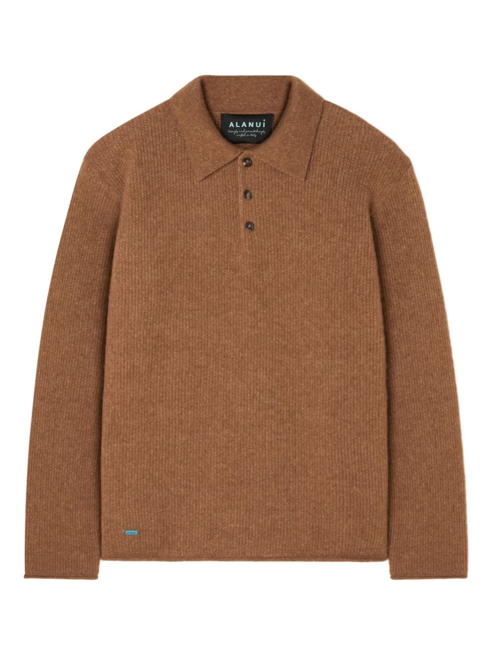 cashmere blend polo shirt Highlights - Brown - Front button placket - Long sleeves - Ribbed knit - Straight hem Made in Italy Composition Cashmere 71%, Silk 19%, Polyester 10% Washing instructions Read Manufacturer Guidelines