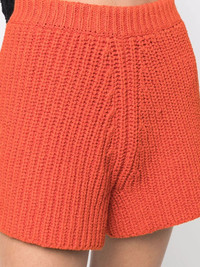 chunky-knit shorts Alanui showcases its roots in knitwear with this shorts. Boasting a high-waisted silhouette, they speak to the brand's creative approach with a lively orange colourway. Made in Italy Composition Cotton 100% SIZE & FIT Model measurements Height 5 ft 10 in(1.78 m) Bust/Chest 33.07 in(84 cm) Hips 35.82 in(91 cm) Waist 25.98 in(66 cm) FittingInformation This piece fits true to size. We recommend you get your regular size Designed to be fitted at the waist and hips, loose over the leg Made with a mid-weight non-stretch fabric Washing instructions Dry Clean Only