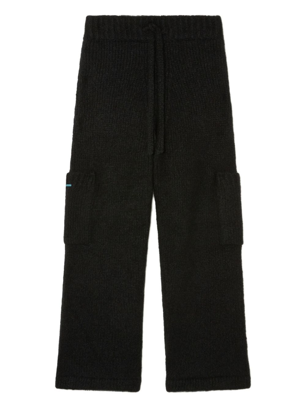 drawstring knitted trousers Highlights - Black - Ribbed knit - Drawstring waistband - Side pockets - Straight leg Made in Italy Composition Cashmere 90%, Silk 10% Washing instructions Read Manufacturer Guidelines