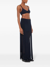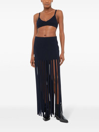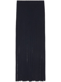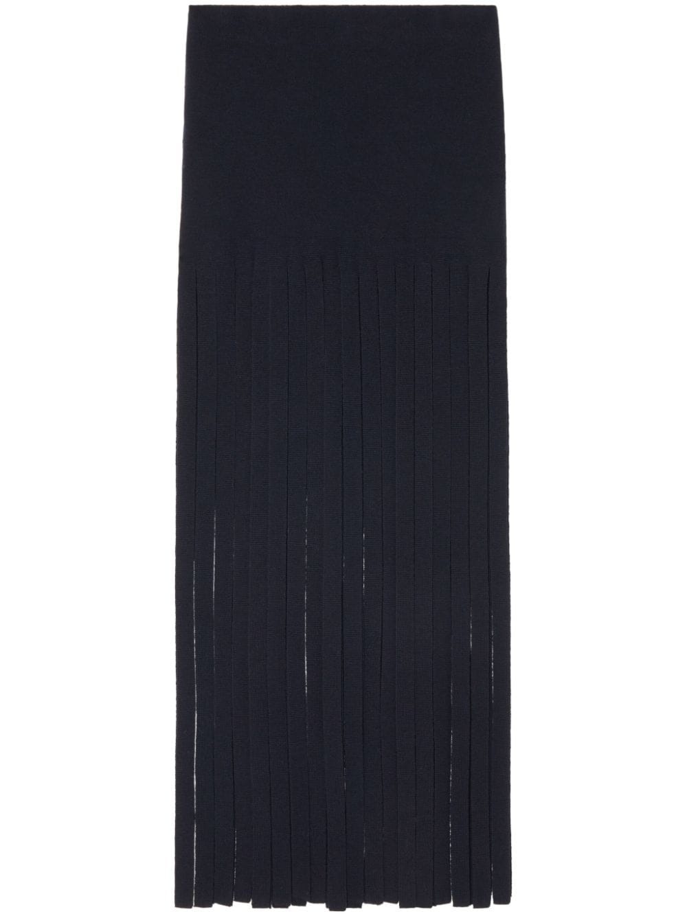 Eclectic fringed wool skirt Highlights - Midnight blue - Wool blend - Ribbed knit - Cut-out detailing - Fringed edge - High-waisted - Elasticated waistband Made in Italy Composition Virgin Wool 91%, Polyamide 6%, Elastane 3%