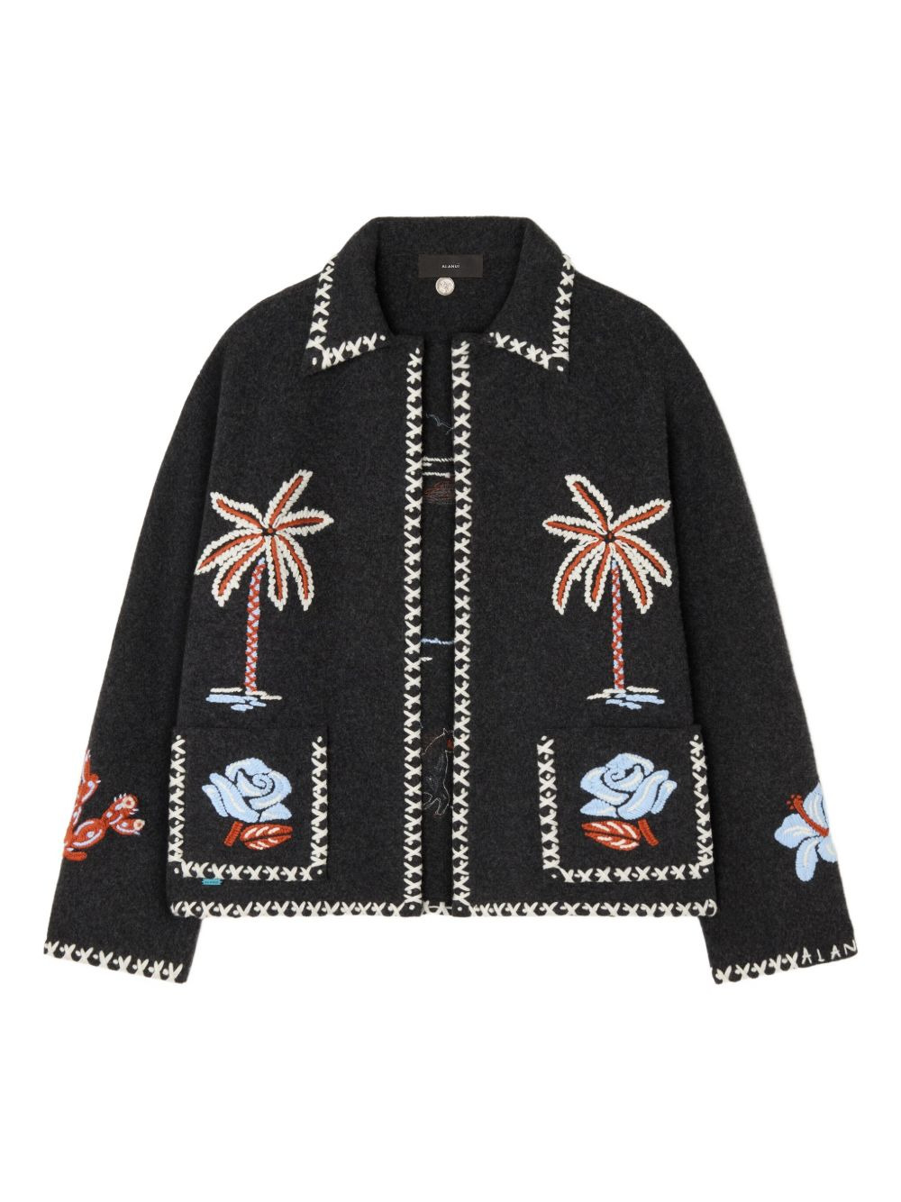 embroidered chain-trimmed jacket Highlights - Black - Wool - Scenic embroidery - Palm tree embroidery - Rose embroidery - Chain trim Made in Italy Composition Virgin Wool 100%, Wool 100% Washing instructions Read Manufacturer Guidelines