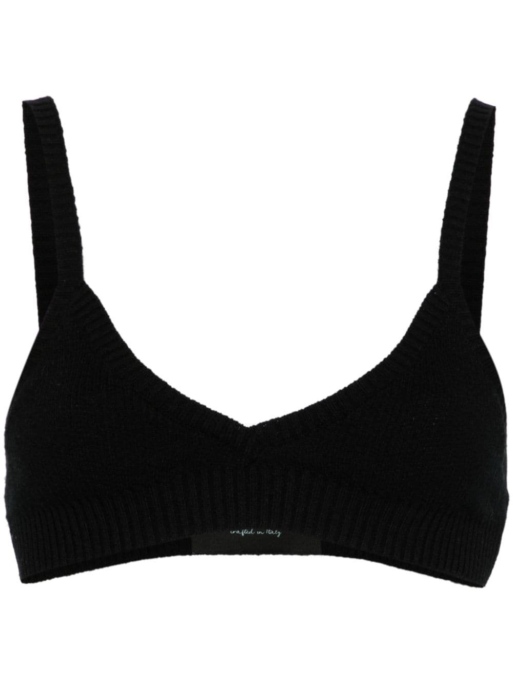 Finest brallete-style top Highlights - Black - Cotton-cashmere blend - Knitted construction - Ribbed knit - Bralette style - V-neck - Spaghetti straps - Ribbed straight hem Made in Italy Composition Cashmere 64%, Cotton 36% SIZE & FIT Model measurements Height 5 ft 11 in(1.8 m) Bust/Chest 33.07 in(84 cm) Hips 37.4 in(95 cm) Waist 25.19 in(64 cm) FittingInformation Designed for a close fit throughout Made with a lightweight knit, this piece offers some stretch This piece fits true to size – take your usual size Washing instructions Dry Clean Only