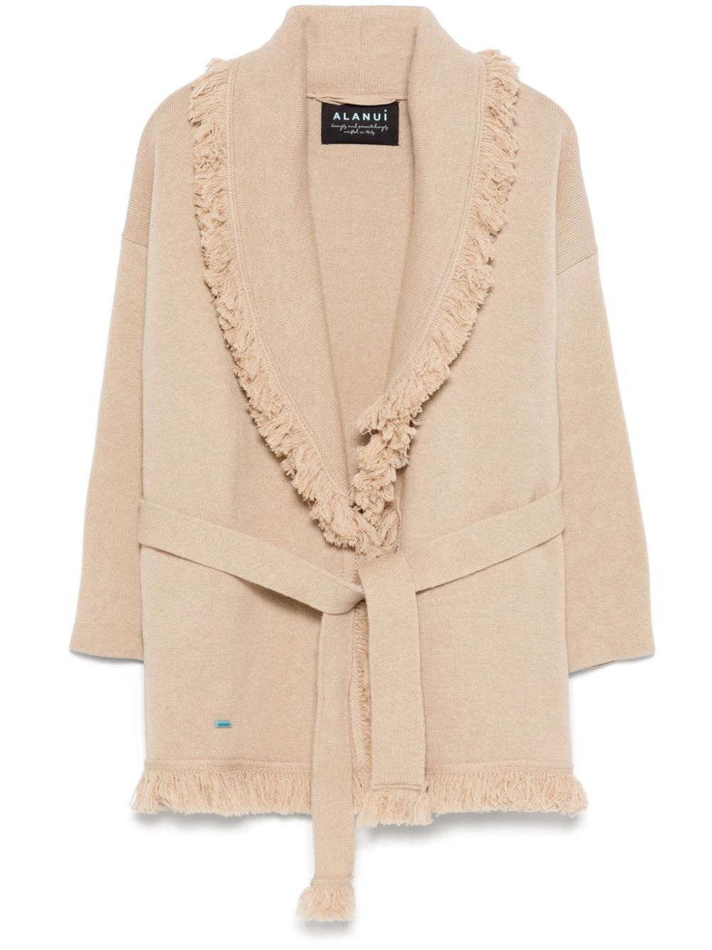 Finest cardigan Highlights - Sand beige - Two side slit pockets - Frayed edge - Shawl lapels - Long sleeves Made in Italy Composition Cashmere 64%, Cotton 36% SIZE & FIT Model measurements Height 5 ft 11 in(1.8 m) Bust/Chest 32.67 in(83 cm) Hips 36.22 in(92 cm) Waist 24.4 in(62 cm) FittingInformation Designed to be unstructured, offering a loose fit throughout The tie fastening gives an adaptable and personalised fit Made with a midweight knit, this piece offers some stretch