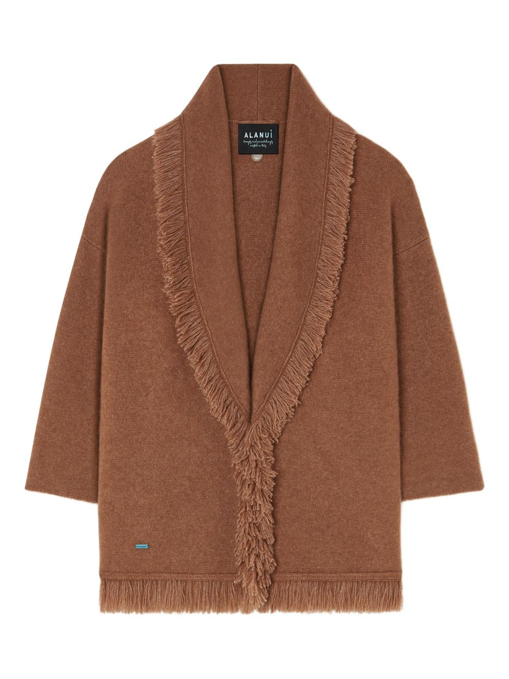 Finest fringed belted cardigan Highlights - Brown - Fringed trim - Belted waist - Shawl collar - Long sleeves Made in Italy Composition Cashmere 71%, Silk 19%, Polyester 10% Washing instructions Read Manufacturer Guidelines