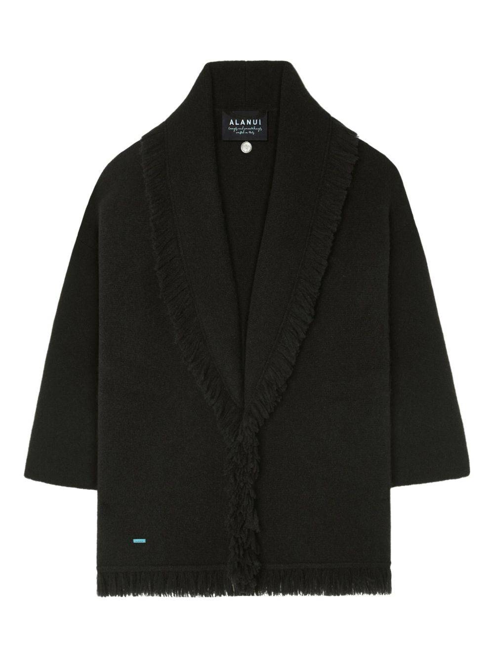 Finest fringed cardigan Highlights - Black - Shawl collar - Fringed trim - Open front - Long sleeves - Cashmere blend Made in Italy Composition Cashmere 71%, Silk 19%, Fabric 10% Washing instructions Read Manufacturer Guidelines