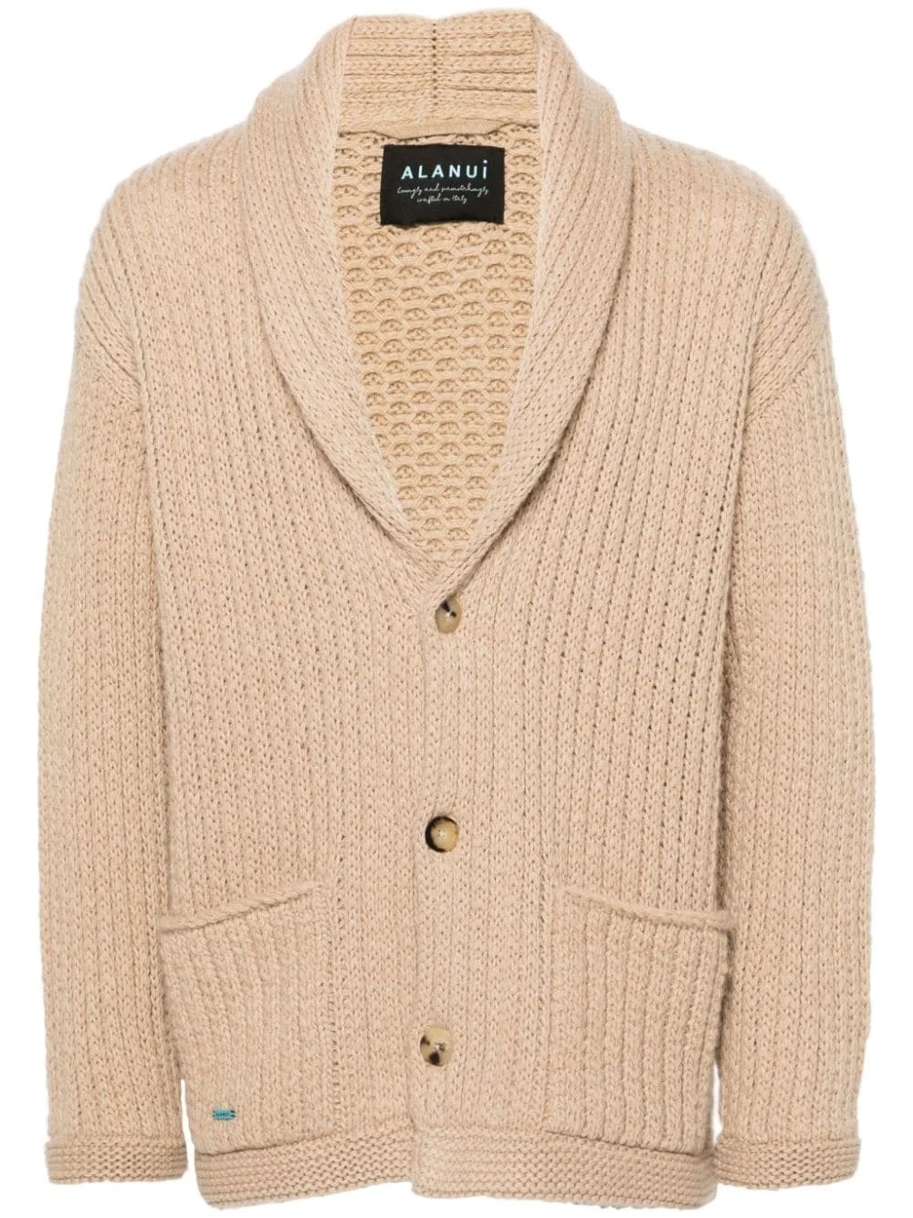 Finest ribbed cardigan Highlights - Beige - Cashmere-cotton blend - Chunky ribbed knit - Logo plaque to the front - Shawl lapels - Front button fastening - Drop shoulder - Long sleeves - Two front patch pockets - Ribbed cuffs and hem Made in Italy Composition Cashmere 64%, Cotton 36% SIZE & FIT Model measurements Height 6 ft 2 in(1.87 m) Bust/Chest 36.22 in(92 cm) Hips 37 in(94 cm) Waist 27.95 in(71 cm) FittingInformation Designed to be unstructured, offering a loose fit throughout Made with a midweight knit, this piece offers some stretch This piece fits true to size – take your usual size Washing instructions Read Manufacturer Guidelines