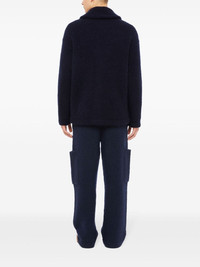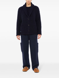 Finest ribbed cardigan Knitted in Italy from a sumptuous cashmere-silk blend, this midnight-blue Alanui cardigan showcases a restrained side of the brand, boasting a minimalist, unadorned design defined by its signature shawl collar. Highlights - Navy blue - Cashmere-silk blend - Ribbed knit - V-neck - Mini logo tag - Front button fastening - Two front patch pockets Made in Italy Composition Cashmere 90%, Silk 10%