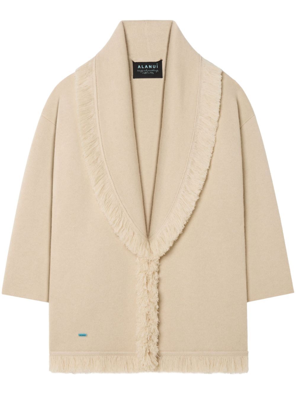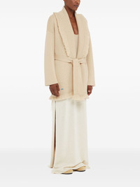 Finest single-breasted coat Highlights - Ecru - Open front - Shawl lapels - Long sleeves - Fringed edge Made in Italy Composition Cashmere 64%, Cotton 36%