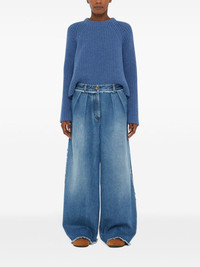 fringed wide leg jeans Highlights - Blue - Cotton - Fringe detailing - Classic five pockets - Belt loops - High-waisted - Straight leg Made in Italy Composition Cotton 100%