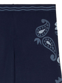 Glimpse of Eden palm-tree paisley trousers Highlights - Navy blue - Palm-tree pattern - Paisley pattern - Knitted construction Made in Italy Composition Virgin Wool 56%, Silk 44% Washing instructions Read Manufacturer Guidelines