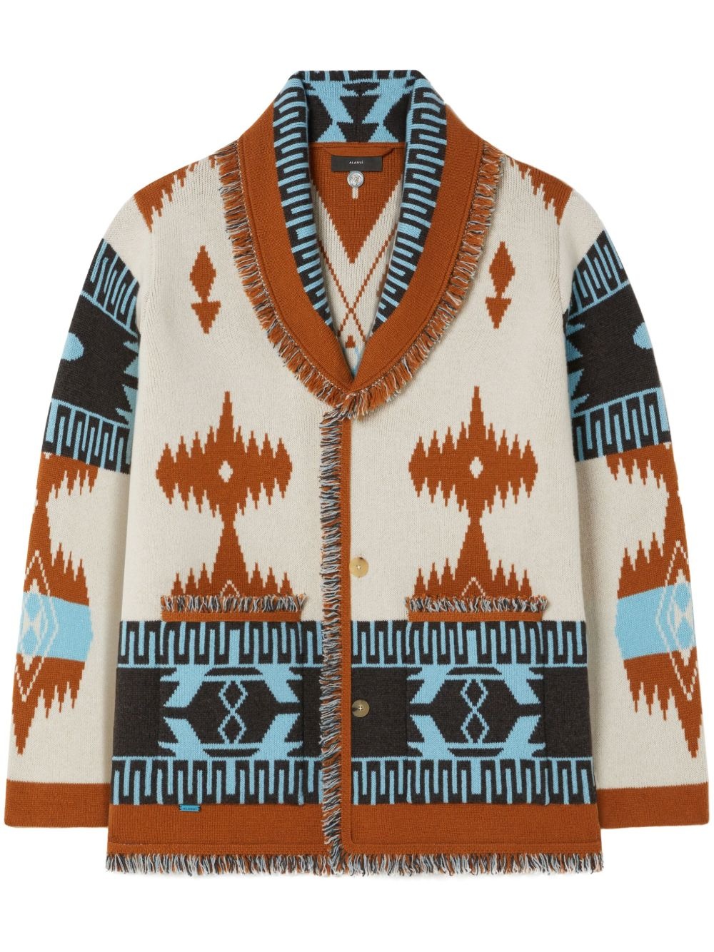 Icon cardigan Highlights - Ecru - Front button fastening - Two front patch pockets - Patterned jacquard - Fringed edge Imported Composition Cashmere 100% SIZE & FIT FittingInformation Designed to be unstructured, offering a loose fit throughout Made with a midweight knit, this piece offers some stretch Washing instructions Dry Clean Only
