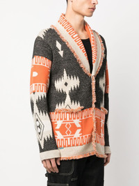 Icon jacquard V-neck cardigan Alanui offers pieces seen as 'inseparable and timeless companions' crafted from high-quality materials. Woven from a soft blend of linen and cashmere, the Icon jacquard cardigan is cut for a relaxed fit whilst frayed edges add texture. Highlights - Multicolour - Linen blend - Knitted construction - Full jacquard - V-neck - Front button placket - Frayed edge - Two front patch pockets - Long sleeves Made in Italy Composition Cashmere 70%, Linen/Flax 30% SIZE & FIT Measurement CHEST 43.3 in(110 cm) SLEEVE LENGTH 23.62 in(60 cm) LENGTH 28.34 in(72 cm) Washing instructions Dry Clean Only