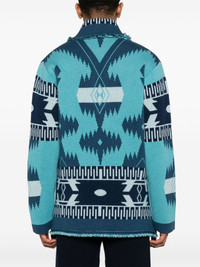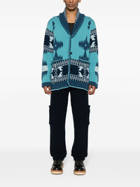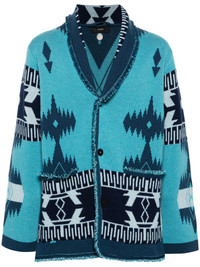 Icon pattern-jacquard cardigan Highlights - Tiffany blue/multicolour - Cashmere - Patterned intarsia knit - Fringe detailing - Shawl lapels - V-neck - Front button fastening - Drop shoulder - Long sleeves - Two front patch pockets - Straight hem Made in Italy Composition Cashmere 100% SIZE & FIT Model measurements Height 6 ft 2 in(1.87 m) Bust/Chest 36.22 in(92 cm) Hips 37 in(94 cm) Waist 27.95 in(71 cm) FittingInformation Designed to be unstructured, offering a loose fit throughout Made with a midweight knit, this piece offers some stretch This piece fits true to size – take your usual size Washing instructions Dry Clean Only
