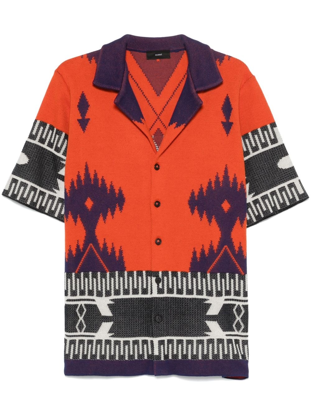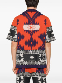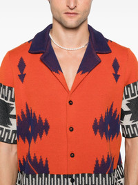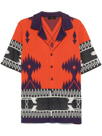 Icon shirt Highlights - Flame red - Front button fastening - Patterned jacquard - Camp collar - Short sleeves Made in Italy Composition Cotton 100%, Cattle Horn 100% SIZE & FIT Model measurements Height 6 ft 2 in(1.87 m) Bust/Chest 37.79 in(96 cm) Hips 37.79 in(96 cm) Waist 30.31 in(77 cm) FittingInformation Designed to be unstructured, offering a loose fit throughout Made with a midweight knit, this piece offers some stretch