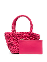 interwoven-design small leather tote bag Highlights - Raspberry pink - Lambskin - Interwoven design - Logo tag - Two rolled top handles - Main compartment Made in Italy Composition Outer: Polyurethane 100%, Lambskin 100% Lining: Viscose 100%, Lambskin 100% SIZE & FIT Model measurements Height 5 ft 11 in(1.8 m) Bust/Chest 33.07 in(84 cm) Hips 37.4 in(95 cm) Waist 25.19 in(64 cm)