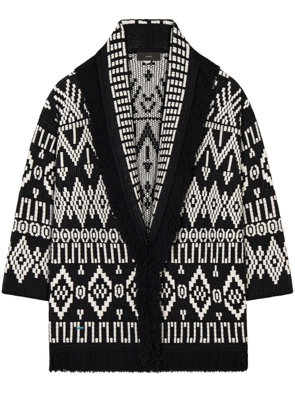 Jungle Beat cardigan Highlights - Black - Detachable waist belt - Patterned jacquard - Long sleeves - Fringed edge Imported Composition Virgin Wool 48%, Cotton 40%, Polyamide 12%