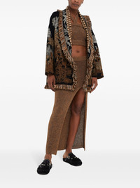 Jungle Toile de Jouy cardigan Highlights - Brown - Belted waist - Logo patch to the front - Fringed edge - V-neck Imported Composition Wool 44%, Cotton 44%, Silk 12% Washing instructions Read Manufacturer Guidelines