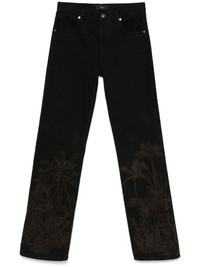 Jungle Toile de Jouy jeans Highlights - Black - Front button and zip fastening - Belt loops - Classic five pockets - Logo patch to the rear Made in Italy Composition Outer: Cotton 100% Lining: Polyester 65%, Cotton 35% SIZE & FIT Model measurements Height 5 ft 10 in(1.78 m) Bust/Chest 33.85 in(86 cm) Hips 36.61 in(93 cm) Waist 26.77 in(68 cm) FittingInformation Designed for a straight-leg fit, these jeans allow for a close fit at the waist and an unrestricted and comfortable fit over the leg Sturdy and hard-wearing, this denim piece offers no stretch