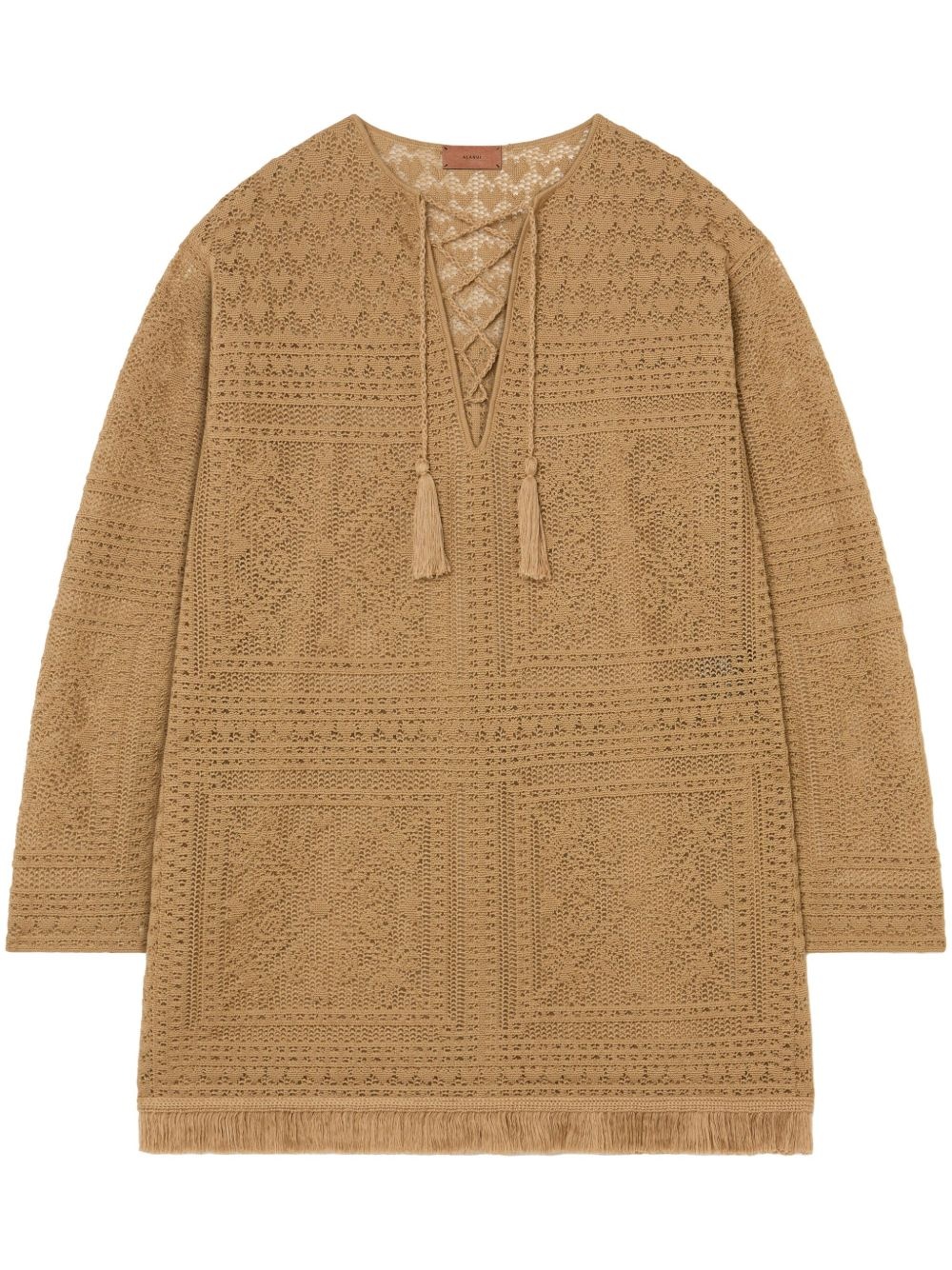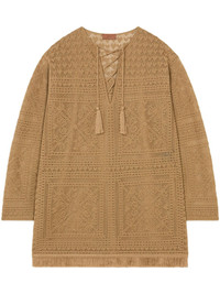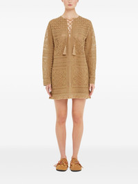 Kiss By The Book mini dress Highlights - Sand beige - Front lace-up fastening - Tassel detail - Fringed edge Made in Italy Composition Cotton 76%, Cashmere 14%, Polyester 10%