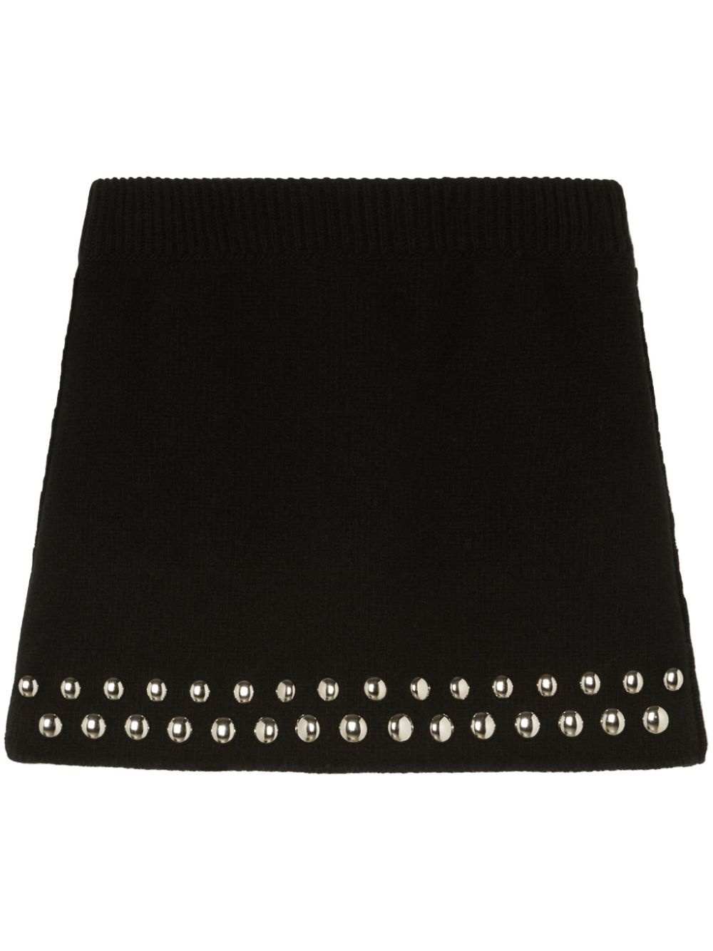 Love and Studs mini skirt Highlights - Black - Virgin wool - Fine knit - Stud embellishment - Mid-rise - A-line - Thigh-length Made in Italy Composition Virgin Wool 100%, Metal 100%